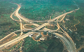 成(都)渝高速内江互通式立交桥 全长3699米,1997年12月建成通车。获交通部优质工程奖。
