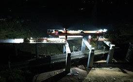 4月13日凌晨,汉巴南铁路蓬安制梁场跨兰渝铁路特大桥箱梁架设二级施工圆满完成。
