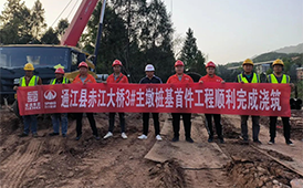 4月6日傍晚,随着最后一车混凝土注入桩基,通江县赤江大桥3号主墩桩基首件工程顺利完成浇筑,标志着大桥施工正式拉开序幕