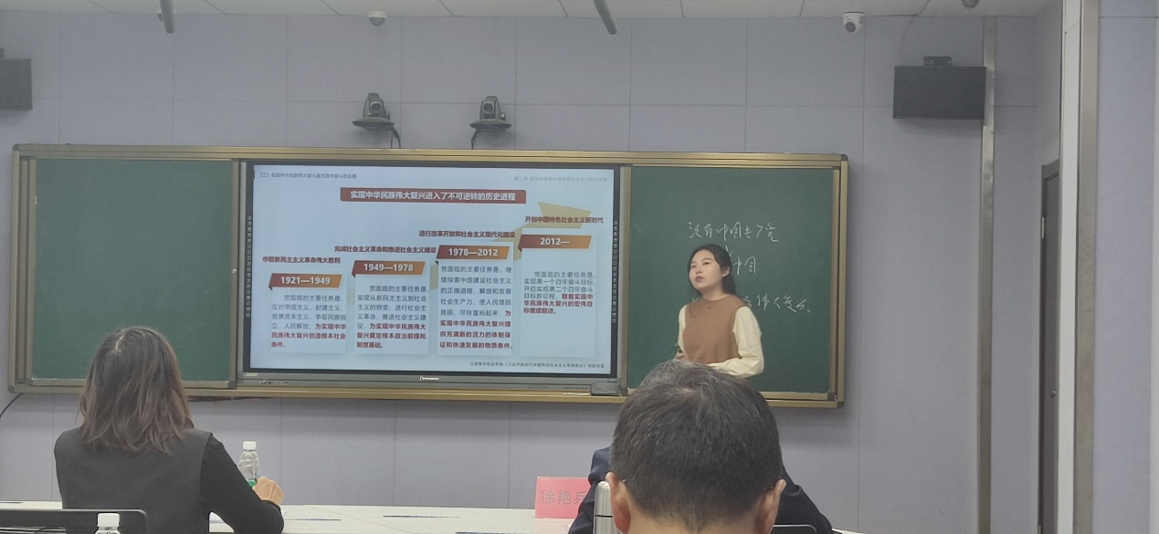 学校23名思政课专职教师集中利用10月29日一天时间,围绕《思想道德与法治》《毛泽东思想和中国特色社会主义理论体系概论》《习近平新时代中国特色社会主义思想概论》等课程,严格按照文件要求,以教育部推荐的教学课件和教育厅推荐的“问题式专题化”教学课件为基础,自选一个“问题链”进行20分钟的“晒课”。