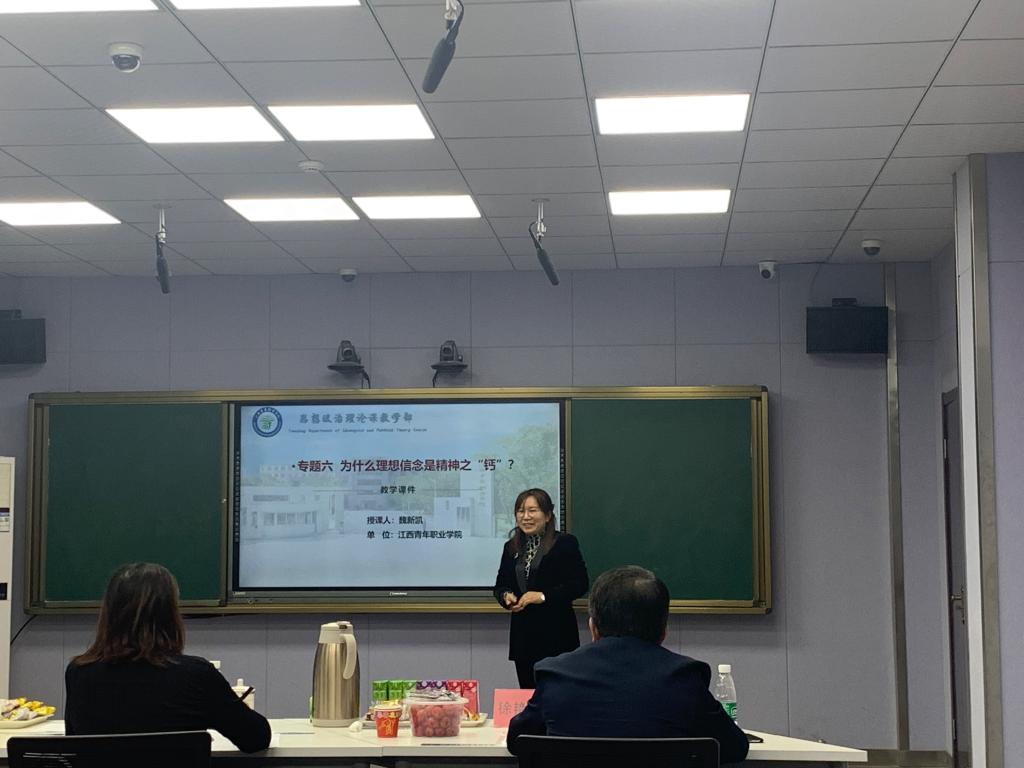 10月29日,学校在实训大楼智慧教室组织思政课专职教师开展全员集中“晒课”,特别邀请片区牵头单位南昌航空大学马克思主义学院副院长常青、江西司法警官职业学院思政部主任徐艳兵、江西艺术职业学院思政部主任黄立群担任“晒课”评委。学校思政课专职教师23人全员全程参与“晒课”。