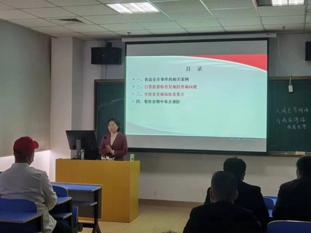 培训中,李巍巍围绕高校食品安全事件的相关案例;日常监督检查发现的普遍问题;学校食堂现场检查要点;餐饮食物中毒及预防等四个方面向在场的人员进行了讲解。她强调后勤管理及服务人员要加强隐患排查,日常工作中重点查食材采购、索证索票、进货查验、加工制作、储存保质、清洗消毒和人员健康等方面存在的问题和薄弱环节,坚决不用高风险食材加工制作食品供师生食用,防范食源性疾病聚集性事故发生