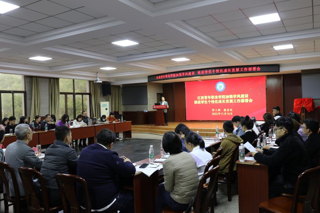 会议对《江西青年职业学院关于加强学风建设 推进学生个性化成长发展的实施意见》及《江西青年职业学院“一生一方案”:大学生精细化、精准化、个性化成长发展方案》进行了解读。各系、九龙湖教育基地负责人就推进落实《意见》《方案》作了表态发言。