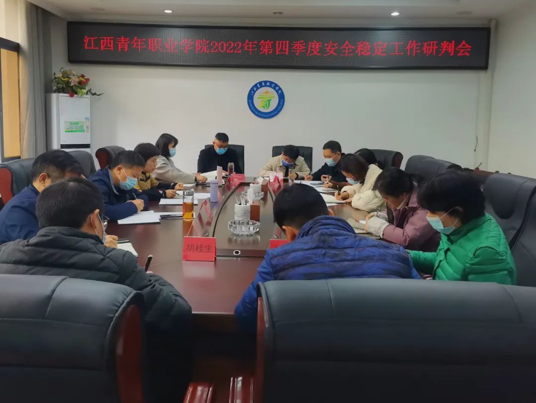 12月8日下午,学校在行政楼201会议室召开2022年第四季度安全稳定工作研判会,学校党委书记罗来松出席,各职能部门主要负责人,各系党总支书记,九龙湖教育基地管理部书记参加,会议由党委委员刘英主持。