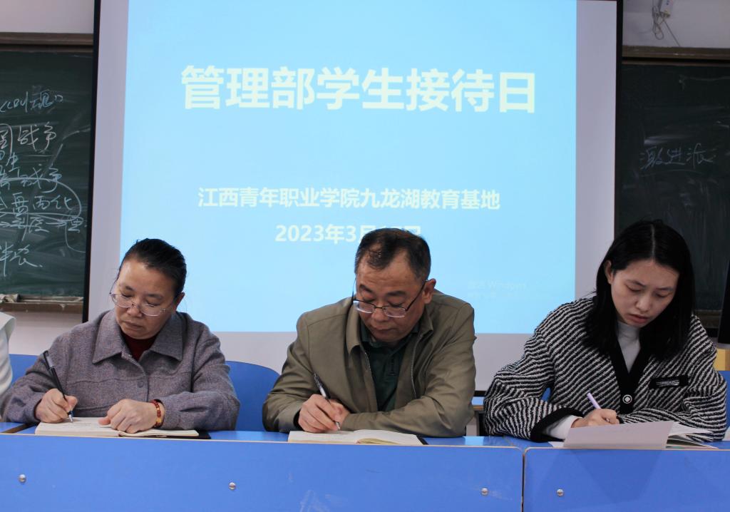 为聆听学生心声,贴近学生需求,关心学生成长,促进学校发展,更好践行“我为群众办实事”,及时解决广大学生“急难愁盼”问题。3月17日下午,学校九龙湖教育基地管理部在一号教学楼201教室开展第一次“学生接待日”活动。学校党委委员、统战部部长涂志华、相关部门负责人及管理部全体行政人员以“面对面座谈”的形式与学生代表展开深入交流。