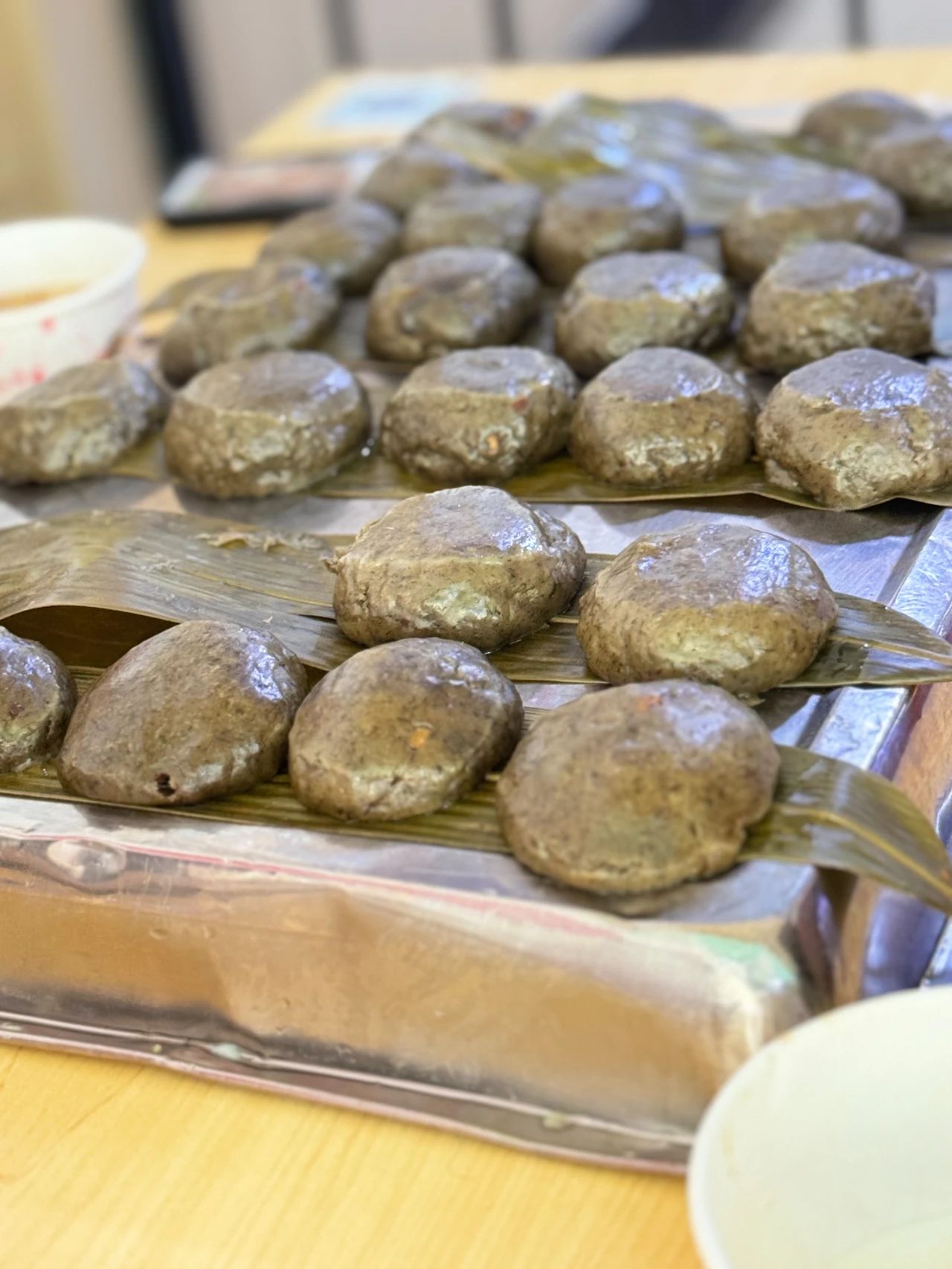 活动中,师生们将新鲜的艾草叶洗净后放入锅中蒸煮,再将蒸煮出的艾叶汁倒入糯米粉中搅拌、揉捏、压扁,包馅,直至形成一团团翠绿的糯米团。师生们边学习包青团的技巧,边交流清明节的风俗习惯和南北饮食文化,现场气氛活跃而温馨。