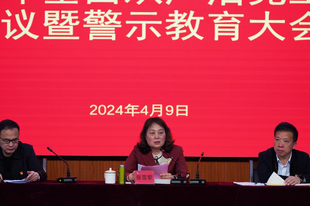 张雪黎肯定了2023年学校全面从严治党工作取得的成绩,指出了存在的差距和不足,并就加强学校全面从严治党工作提出六点要求。她强调,要坚持和加强党的全面领导。要在坚定政治立场上下功夫、在严肃党内政治生活上下功夫、在提升政治能力上下功夫、在加强对群团统战工作的领导上下功夫,严格落实党委领导下的校长负责制,进一步完善和严格执行党政议事决策规则,要深入推进依法治校,不断完善制度体系,不断增强党委总揽全局、协调各方的能力,切实把党的领导落实到办学治校的全过程。要持之以恒强化政治建设。持续深入抓好理论武装,深入学习领悟习近平总书记关于党的自我革命的重要思想和全面从严治党战略方针,认真落实习近平总书记考察江西重要讲话精神和关于教育的重要论述。严守政治纪律和政治规矩,抓好省委巡视反馈问题整改,做实意识形态工作,坚决维护校园稳定安全。要坚持不懈抓好思想建设,不断坚定理想信念。坚持用习近平新时代中国特色社会主义思想铸魂育人,要把学习习近平新时代中国特色社会主义思想作为首要政治任务,大力推动习近平新时代中国特色社会主义思想进教材、进课堂、进头脑。巩固拓展主题教育成果,持续推动学校思想政治工作守正创新。要凝心聚力推进基层党建。全力狠抓基层党组织建设,推动党建工作和教学、学生教育、管理服务等业务工作同步谋划、同步部署、同步推进、同步落实、同步检查、同步考评,以党建工作和业务工作的深度融合提升青职院党建工作质量。激发组织活力,以创建“四强”党支部为目标,深入开展新时代高校党建示范创建和质量创优工作。建立党支部软弱涣散预警机制。强化党员管理,做好高校党员发展工作,加强对教师群体的政治引领和政治吸纳,把优秀的人才吸引到党的队伍中来。按照新时期好干部标准,严把程序关、识别关和廉政关,做好干部选拔任用工作。增强干事创业的向心力,加强团结协作,用坚强的党性保证团结,用共同的事业维护团结。在党的建设、学校发展等重点工作中充分发挥各自作用,超前谋划、靠前指挥,步调一致、行动一致,提高凝聚力和战斗力。要驰而不息加强作风建设。持续纠“四风”树新风,紧盯重点节点、重点领域加大明责问责力度,大力纠治文山会海、“指尖上的形式主义”等问题,落实师德师风第一标准,对师德违规问题“零容忍”。强化创先争优意识,按照省委部署开展“大抓落实年”活动,把抓好新常态下的管党治党工作同推进职业教育改革发展紧密结合起来,练就一流的能力,保持一流的状态,争创一流的业绩。全面加强纪律建设,坚持系统观念,深化标本兼治,锲而不舍落实中央八项规定精神,强化以案促改、以案促治,持续加强党员干部纪律建设,常态化开展“身边事教育身边人”专题警示教育,加强学院廉洁文化建设,开展党性党风党纪教育,营造崇廉拒腐的良好风尚。要扛稳抓牢管党治党政治责任。强化责任落实,认真履行第一责任人责任和“一岗双责”。强化制度建设,用制度管人管事管权,全面规范和严格执行“三重一大”事项集体决策、财务管理、重大事项报告等制度,不断提高制度执行力。严肃执纪问责,强化考核结果运用,坚决以问责的刚性执行确保全面从严治党政治责任落实到位。