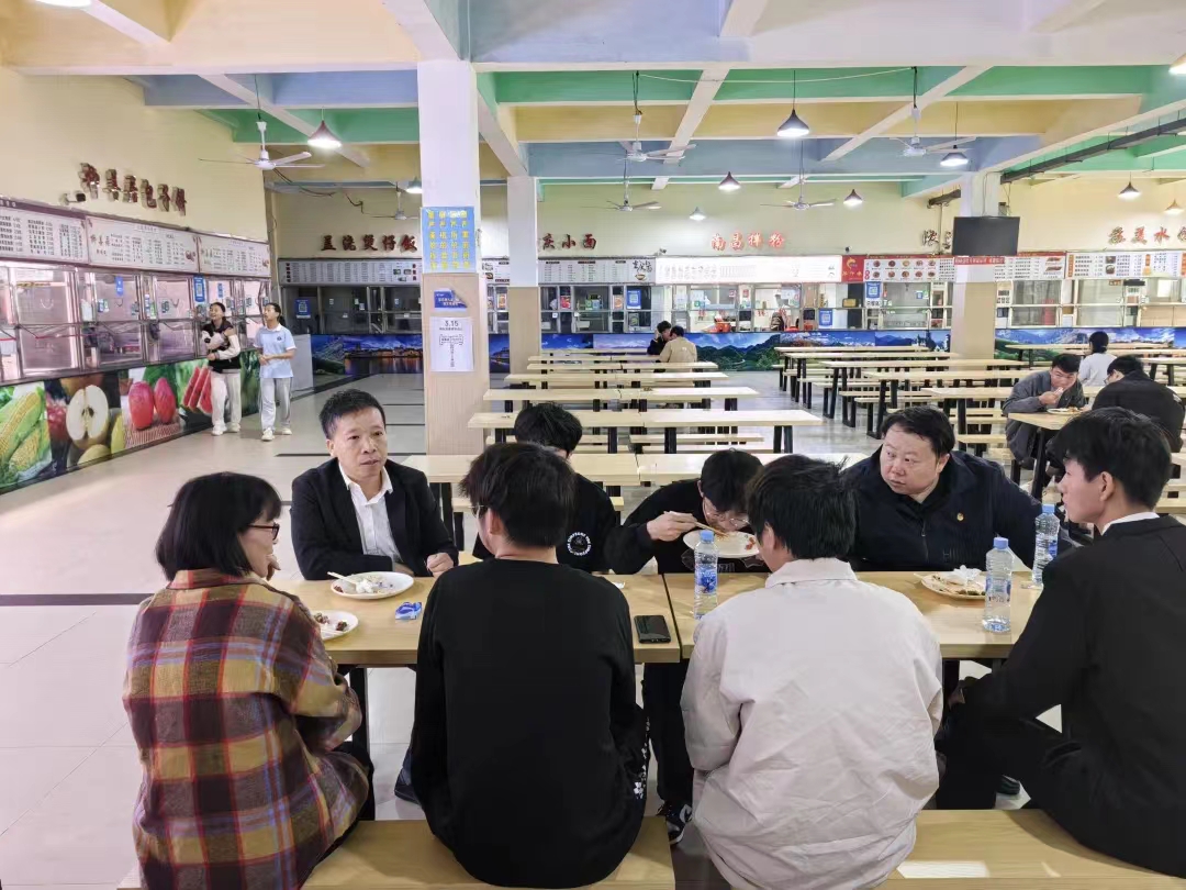 座谈结束,罗来松走进食堂与青年师生共进午餐,聊家常、话成长,并检查食堂食品安全卫生情况。