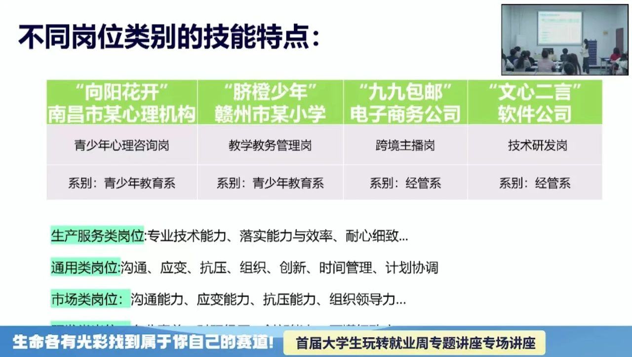 活动除了丰富有趣的游戏内容外,还设置了专家专场讲座,特别邀请了北京市家教工委特别顾问、江苏护理职业学院职业生涯规划与创新创业教育教研室主任李明晋老师做题为《生命各有光彩 找到属于你自己的赛道》讲座,分为线下和线上直播。李老师从当下的就业环境讲起,引入讲座的核心思考主题“怎样找到属于自己的赛道”。
