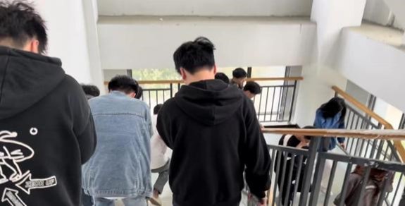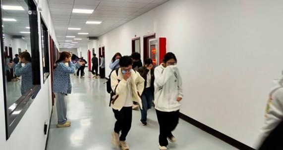 讲座结束后,消防员组织同学们进行应急疏散演练,伴随着一阵急促的警报声,疏导员第一时间到达所在楼层拐角处指挥疏散学生。同学们在疏导员的指挥下手捂口鼻、弯腰,按照预先设定的逃生路线,迅速有序地撤离到安全位置。