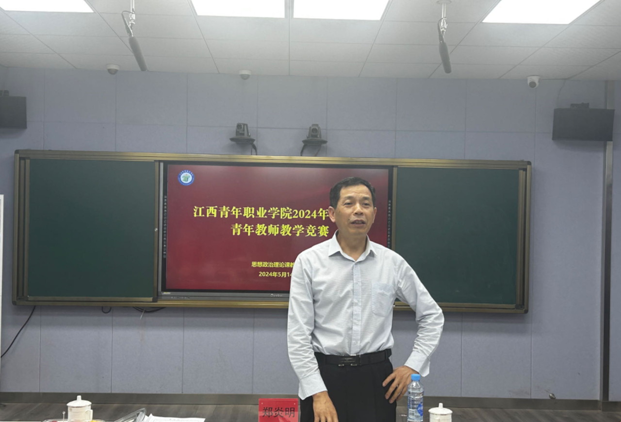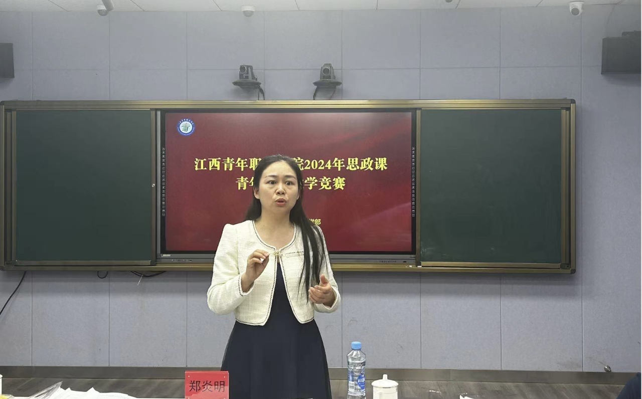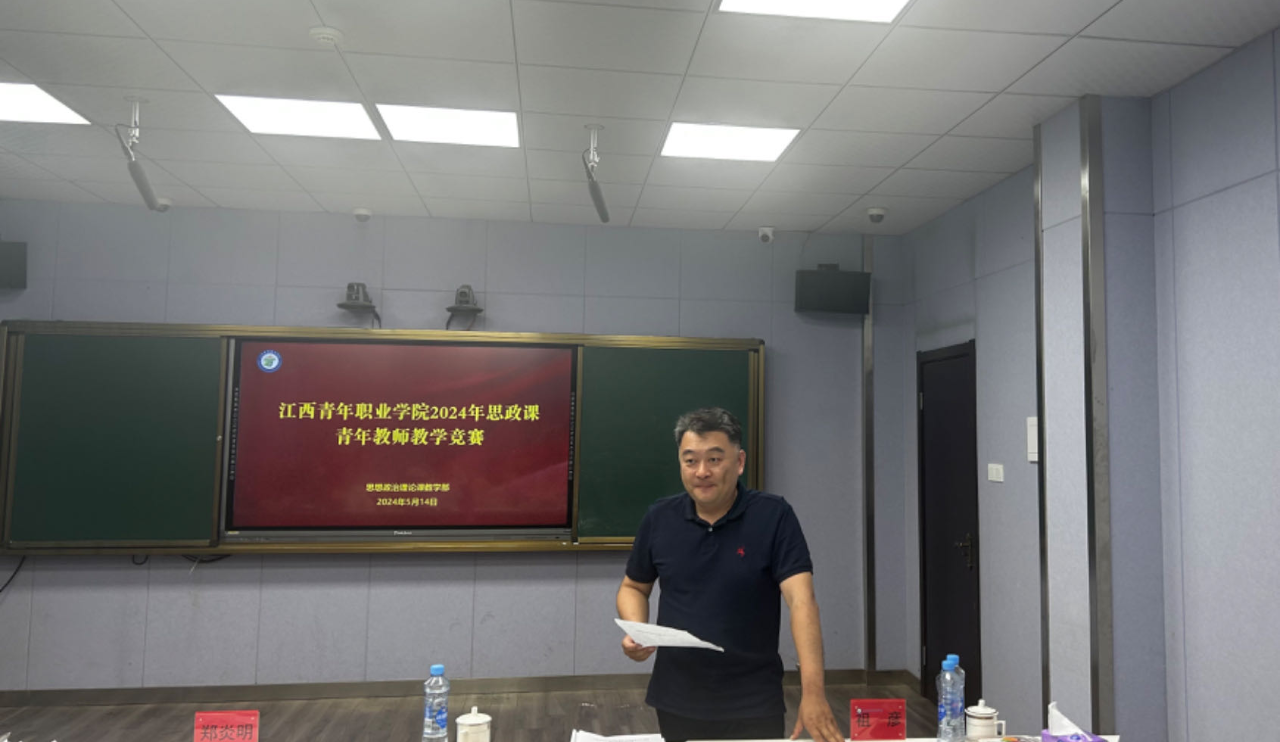 为全面深化思政课教学改革,聚焦职业教育教学“五金建设”,进一步促进思政课青年教师教学能力和思政课教学质量双提升,5月14日,学校举行了2024年思政课青年教师教学竞赛。江西青年职业学院原院长郑炎明教授、江西制造职业技术学院党委宣传部副部长兼思政部主任张艳教授、南昌航空大学马克思主义学院祖彦副教授共同担任本次比赛评委。