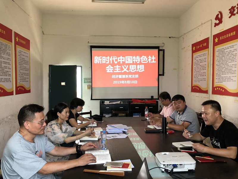8月18日上午, 经济管理系党支部书记白凤鸣讲授微党课《新时代中国特色社会主义思想》。