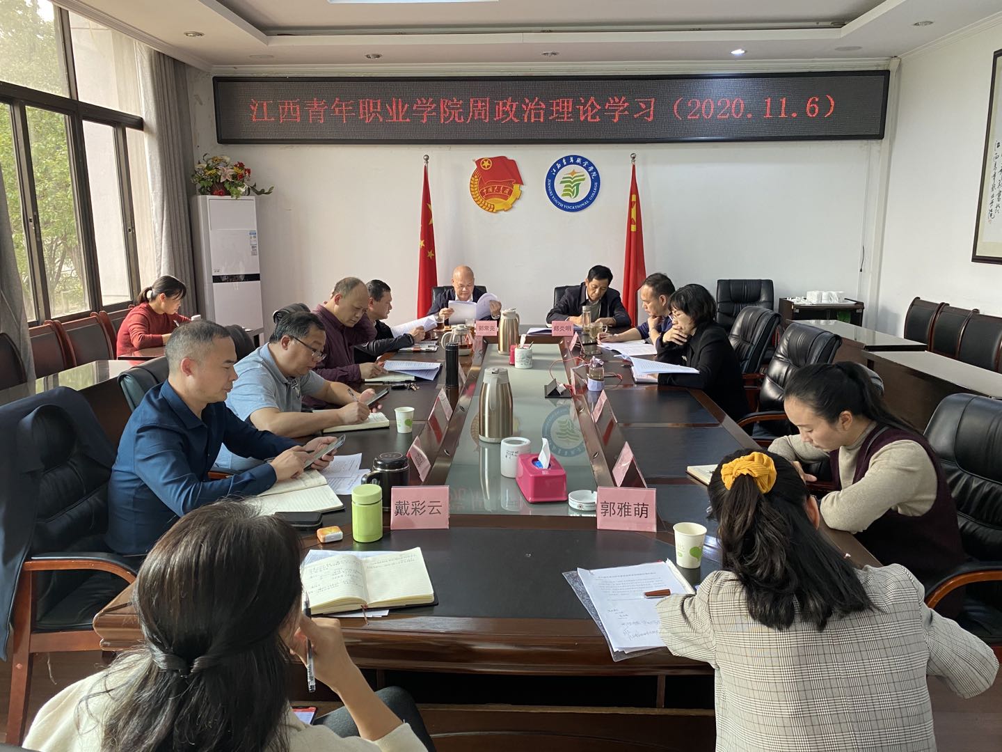 11月6日下午,学校在行政楼会议室召开周政治理论学习,传达学习党的十九届五中全会精神。学校党委书记郭常亮主持学习会,全体党委班子成员参加学习。会议重点学习了《中国共产党第十九届中央委员会第五次全体会议公报》《关于<中共中央关于制定国民经济和社会发展第十四个五年规划和二〇三五年远景目标的建议>的说明》。