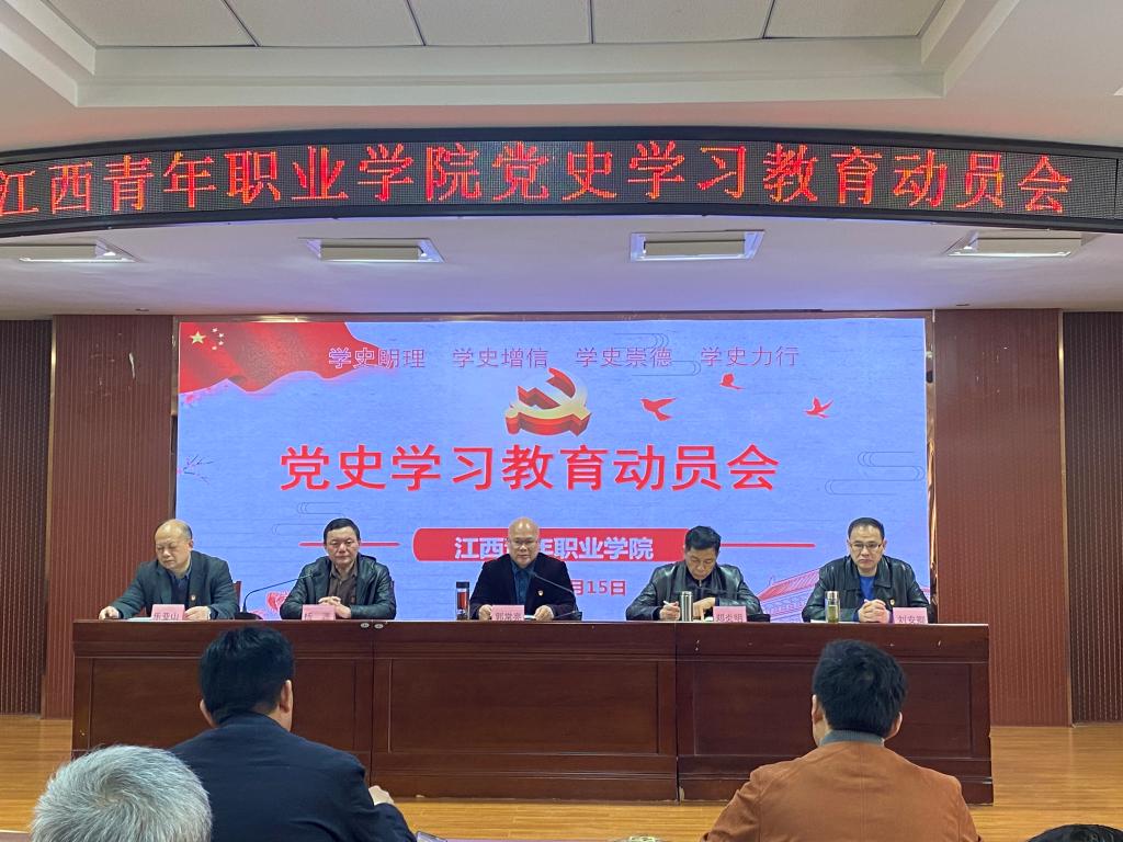 为高标准高质量完成党史学习教育各项任务,3月15日,学校召开党史学习教育动员会,全面动员部署我校党史学习教育。3月22日,学校印发《江西青年职业学院党史学习教育实施方案》,从总体目标、任务要求、主要安排、组织领导等方面,对全校开展党史学习教育作出具体布置,扎实推动党史学习教育走心走实走深。