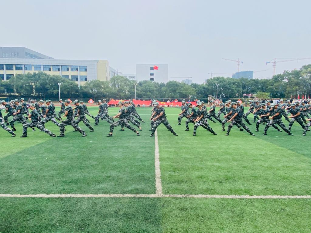 典礼以庄严的升国旗仪式拉开序幕。国旗护卫队护送国旗,全体起立,奏唱国歌。在冉冉升起的五星红旗下,我校2021级新生以激昂的精神面貌汇报军训成果。方阵表演、分列式表演、拳术表演、匕首操表演、战术表演、三个校区军训团表演等展现了青院学子的青春风采。全体新生合唱《我和我的祖国》,用嘹亮的歌声唱出了爱党爱国的坚定信仰。