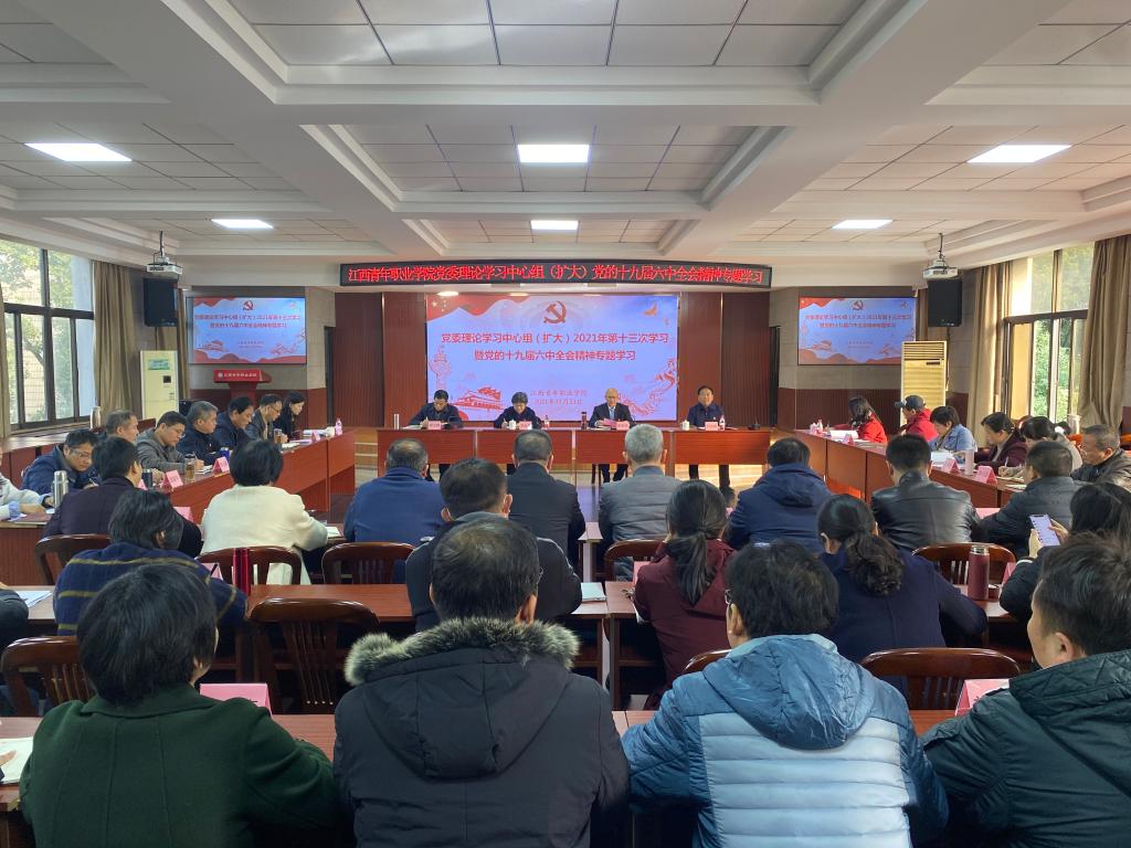 11月23日下午,学校举行党委理论学习中心组(扩大)2021年第十三次学习,专题学习党的十九届六中全会精神,并就学习宣传贯彻全会精神进行部署。省委党史学习教育第九巡回指导组第五指导小组副组长刘金凤、成员袁雅思,南昌交通学院党委副书记何永峰、统战部负责人沈丹到会指导。校党委书记郭常亮主持学习并作总结讲话,党委班子成员、全体中层干部、青年干部理论学习小组全体成员、各党支部支委参加学习。