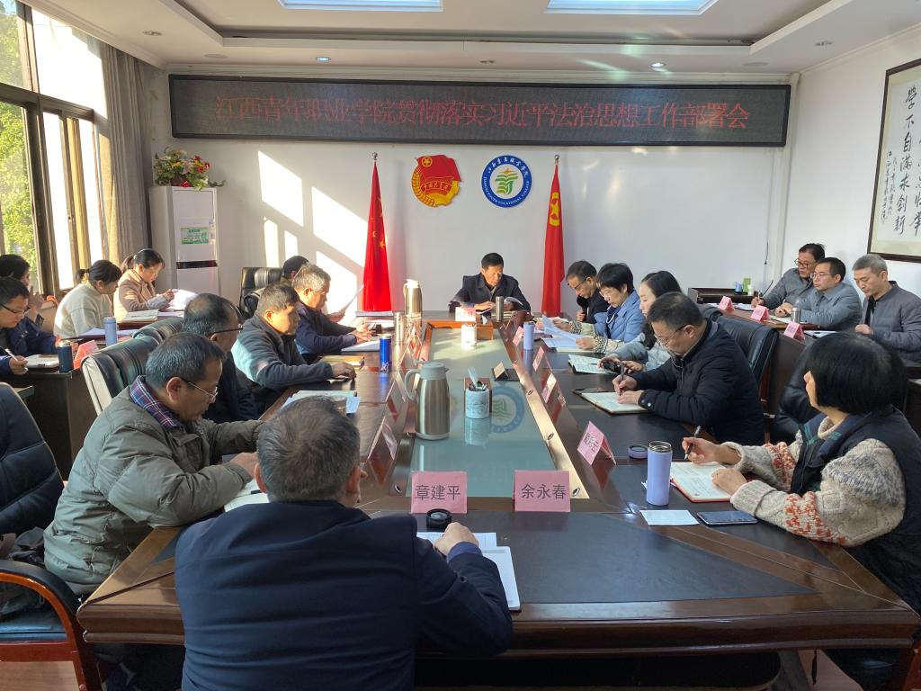 3月11日上午,为深入贯彻落实习近平法治思想和中央全面依法治国工作会议精神,落实省教育厅推进习近平法治思想进教材、进课堂、进头脑工作部署,学校在行政楼201会议室召开贯彻落实习近平法治思想工作部署会,会议由党委副书记、院长郑炎明主持,党委班子成员和各部门主要负责人参加了会议。