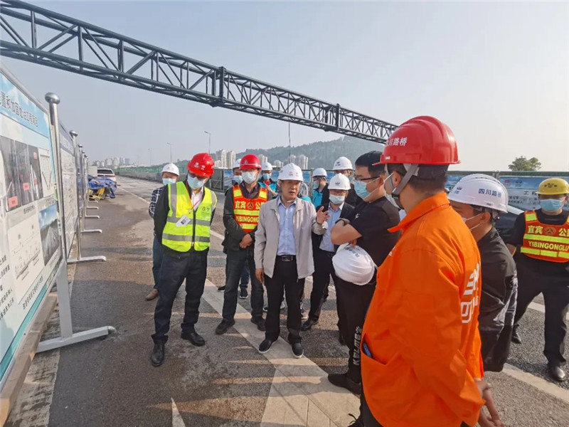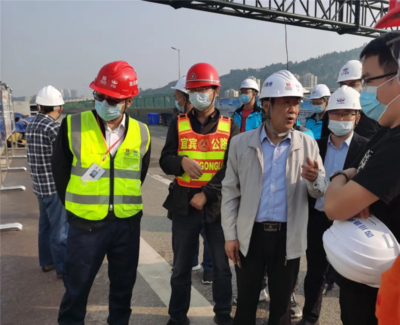 10月20日上午,四川省交通运输厅检查组一行到G247线宜宾岷江大桥加固处治工程项目检查安全生产和疫情防控工作。检查组在宜宾市交通局、公路局、监理单位,特种工程分公司总经理詹文、副总工程师杜兴忠及项目领导班子陪同下,检查了岷江大桥施工现场,详细听取了詹文就现阶段项目施工、疫情防控、安全文明生产及环保措施落实情况等方面的汇报。检查组一行认真听取汇报后,对项目部做好近期工作提出要求: