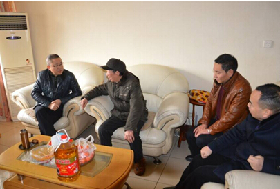 2月15日上午,公司董事长蔡乐军在人力资源部经理王毅、办公室主任冉启洪的陪同下,来到了去年退休的公司原安保部经理罗龙彬家中。罗龙彬去年在公司组织的健康体检中被查出肺部病变,后确诊为肺癌,幸亏及时发现,并成功实施手术和化疗,目前身体恢复良好。蔡董事长十分关心罗龙彬的病情,他仔细询问了治疗情况、退休金领取情况、居住情况和子女工作情况,并送上了粮、油和慰问金。罗龙彬在感激公司慰问的同时,仍不忘关心公司年终的维稳情况。蔡董事长握着他的手说:“请罗大哥放心,公司维稳工作正按预案有条不紊的进行,谢谢大哥退休仍挂记着公司。