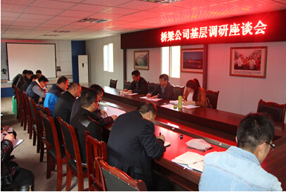 3月20日10点,桥梁公司基层调研座谈会在宜叙19标职工会议室准时召开,会上,刘书记认真听取了项目经理彭孝安关于项目工程建设工作的汇报和第七党支部副书记何国梁关于党建工作的汇报,随后项目职工向刘书记一一作了自我介绍,并在“说出你的想法”环节中向刘书记表达了基层人员最真实的想法和一线工作人员最朴实的心声,其中以“打破论资排辈传统、以能力和绩效为标杆”,“生产建设不放松、劳逸结合促发展”“创造交流学习平台、提高职工综合素质”“关爱职工生活、凝聚生产正能量”等发言最为精彩,引起全场共鸣和阵阵掌声,他表示,只要是有利于构建效益川桥和谐川桥的、有利于推动企业向前发展的,有利于全体职工根本利益的,就是我们应该去做。会上团委陈书记就公司导师带徒制度、项目文明创建、“三重一大”及项目宣传工作作详细阐述,王毅经理从加强施工过程管理、增进项目成本控制、努力转变工作思路、提升执行力度等方面给予了着重强调。