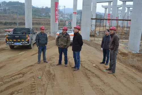 2014年12月10日,桥梁公司董事长蔡乐军一行前往工地。对23公里施工线路内的路基、桥梁施工情况进行了全面检查,对照业主下发的节点目标任务要求,在逐一听取分部对每一个作业点的工作安排和汇报后,提出指导意见。